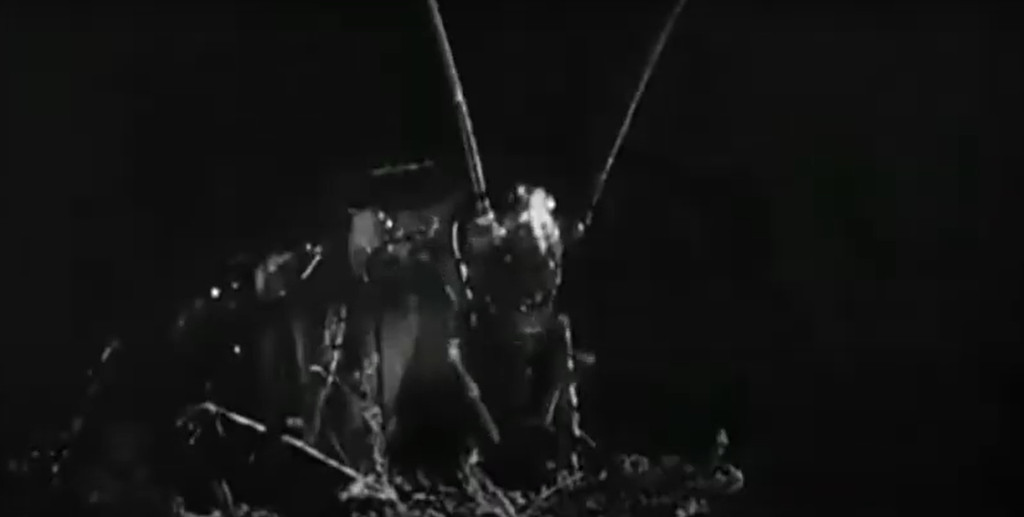 Despite the film’s flaws, it has a nice air of mystery and moves along at a decent pace, spurred on by adequately interesting themes and plotting and decent acting. But as British critic Robin Bailes puts it at Dark Corners: then the giant bugs arrive. This is a film that did not need giant bugs, that is not made any better by giant bugs, and that in no way really revolves around giant bugs. But despite this, the producers hade decided to make giant bugs the climax of the movie. While the bugs are decently filmed, sometimes in natural surrondings, sometimes on a miniature set, they unfortunately never feel like giant bugs, because Gilbert Gunn doesn’t understand to overcrank the camera in order to give them slow-motion movement. As it is, they simply feel like ordinary bugs. That said, there are a couple of creepy bug moments in the film. But overall, the whole bug business feels like it’s been crammed into the wrong film because someone thought it was a good exploitation idea to have giant bugs in the movie that has nothing to do with giant bugs.