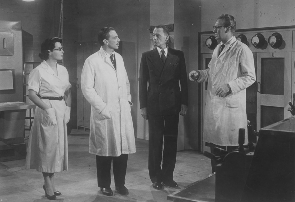Single-minded scientist Dr. Laird (Alec Mango) is working on secret experiments with magnetic fields in his lab outside a small village in Souther England. Assisting him are American Dr. Gil Graham (Forrest Tucker) and new assistant, French Michele Dupont (Gaby André) who is – gasp! – A WOMAN!
