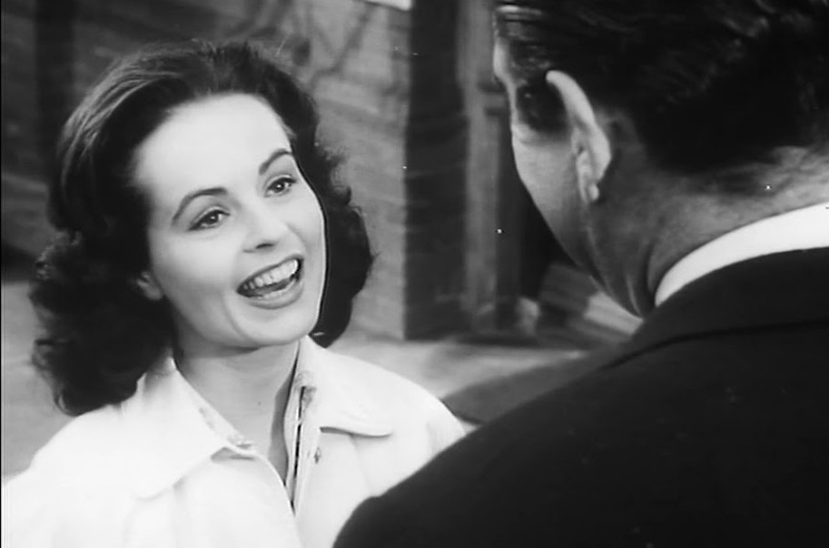 Cameron’s American co-star in Escapement (1958) was Mary Murphy, who was signed by Paramount at the age of 20 in 1951. One of her early roles was a bit-part as a student in When Worlds Collide (1951, review). She quickly worked her way up to leading lady status, with her first starring role in the ill-received, star-studded showbiz drama Main Street to Broadway (1953). However, she got noticed in her next role, playing the love interest of Marlon Brando in The Wild One (1953). However, the film didn’t lead to more prestigious work, even if Murphy continued in leading lady roles in middle-of-the-road movies like Beachhead (1954) and A Man Alone (1955), and had a supporting role in the A-movie The Desperate Hours (1955). However, in the mid-50s, the quality of her roles diminished, as illustrated by her involvement in Escapement, and she sequed into television. She co-starred in the short-lived Investigators (1961) and appeared as a guest star in numerous other shows. Murphy took a 4-year hiatus from acting in 1968, but returned in 1972 when she was offered a role in Sam Peckinpah’s Junior Bonner, but after that it was strictly TV fare for her until she retired for good in 1975.