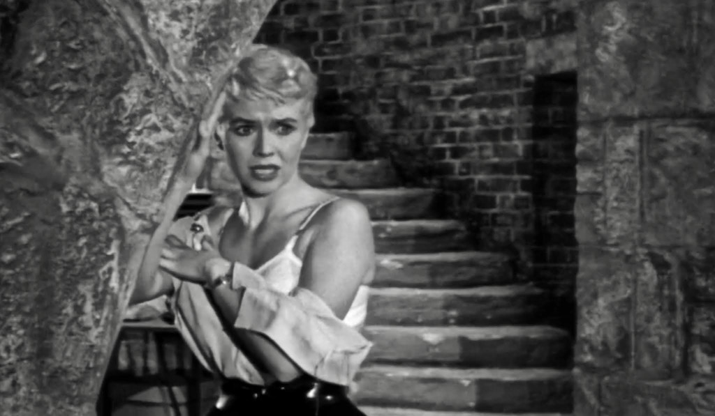 Enter Sally Norton (Vera Day), who works as a hula dancer at a fun fair, and car mechanic Jack Venner (Peter Forbes-Robertson), who looks at hula dancers at the fun fair. When Sally’s barker talks not very nicely to her, Jack slugs him, which gets Sally fired. Jack suggests she see if Dr. Moran is hiring help, which Sally does. And it just so happens that Dr. Morans housekeeper and former lover Margaret (Joyce Gregg) is not only overworked, but also a little bit too inquisitive about what goes on in the basement. Sally is hired as help.