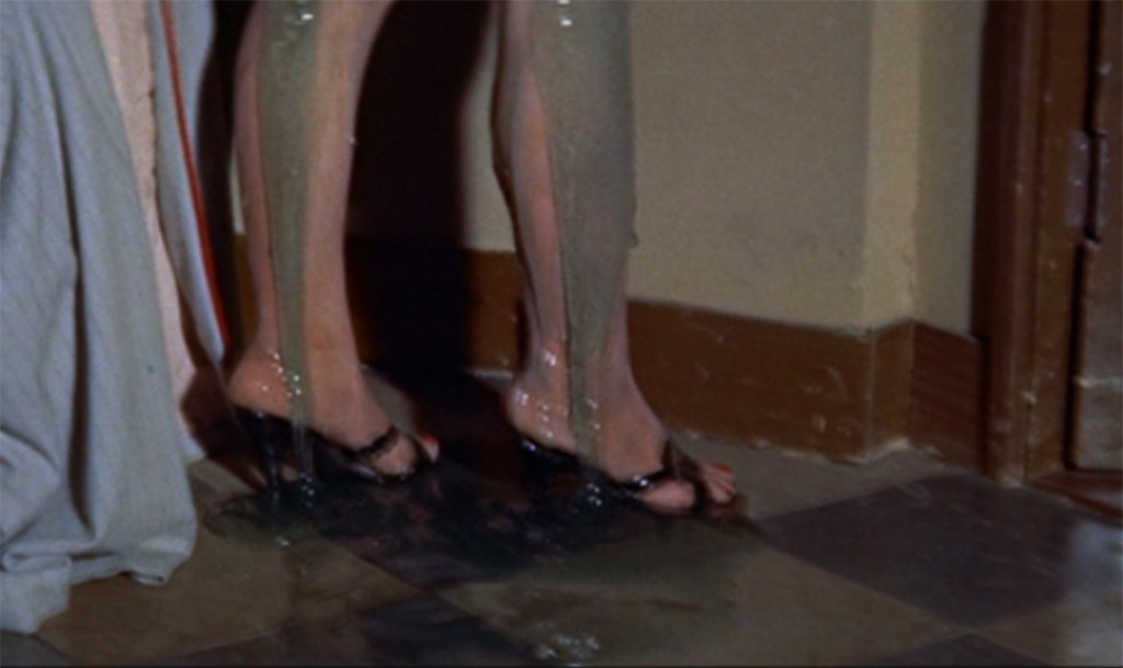 According to Tsuburaya, the goo was made using “a special chemical compound”. In reality, it was a slime made from finely chopped kelp that had been dissolved in water. In some scenes, they would use pressure to pump it through windows and doors. In other scenes they would create the illusion of the slime slithering upwards or sideways on ceilings by simply building a model on its side or upside down, and tilt the camera, and then just let gravity do its work. While the technique is obvious to an adult viewer, the effect is still highly effective. In some scenes, the goo seems to have been filmed against a black backrop and superimposed on the main footage, and these scenes work almost seamlessly. The effects are least effective when Tsuburaya needs to resort to cel animation, making the whole thing look cartoonish. One shot in particular is very bad, namely one in which the bikini-clad Ayumi Sonoda is devoured by the goo. In order to make the shot work, Tsuburaya freeze-frames Sonoda and adds a poorly executed animation on top of her. This scene was cut from the US version when Columbia released it in 1959. Film buffs who were not able to see the Japanese version for a long time assumed that the scene was cut because of its gruesomeness, but in all probability Columbia left it on the cutting room floor because of its shoddiness.