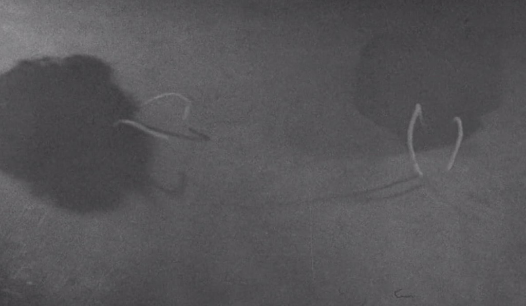 Kettering and Powers take another stab at exploring the cone, this time finding a foggy room with a bearded, old Nimoy sitting on a throne surrounded by tubes filled with parasites. He explains that he and the parasites represent a higher order of social interaction, and will free mankind from suffering and pain, through removing free will and subjugating ourselves to the parasites. Of course, our thorough-bred Americans will never subjugate themselves to any commie parasites, so they shoot Nimoy and crawl back outside. Here Kettering comes up with a rather complicated plan to electrocute the cone, involving harpoon guns and high-tension wires. However, at the last minute it is revealed that the parasites have also body-snatched Kettering’s girlfriend Alice, whom he stupidly tries to save, before she shoots him and Glenn electrocutes them both along with the communist parasites.