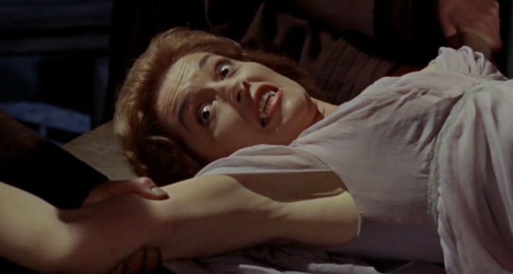 The only other actor with anything you’d call name recognition in Blood of the Vampire is Barbara Shelley, who would later go on to fleshier roles as a scream queen in several Hammer horrors. While Sangster should be given credit for creating a female lead with actual agency in Blood of the Vampire, the role of the proper Madeleine doesn’t give Shelley any chance to shine. Vincent Ball is quite good in the lead as John Pierre, but it’s another one of Sangster’s bland leading man roles. William Devlin makes an impression as Pierre’s cell mate, but gets too little screen time, whereas Victor Maddern as the hunchback Carl gets too much, as Sangster and Cass like to present his hideous visage as much as possible, but fail to create any meaningful story arc for him.