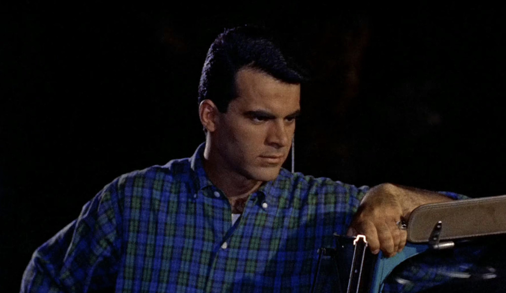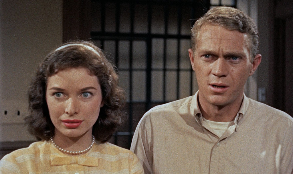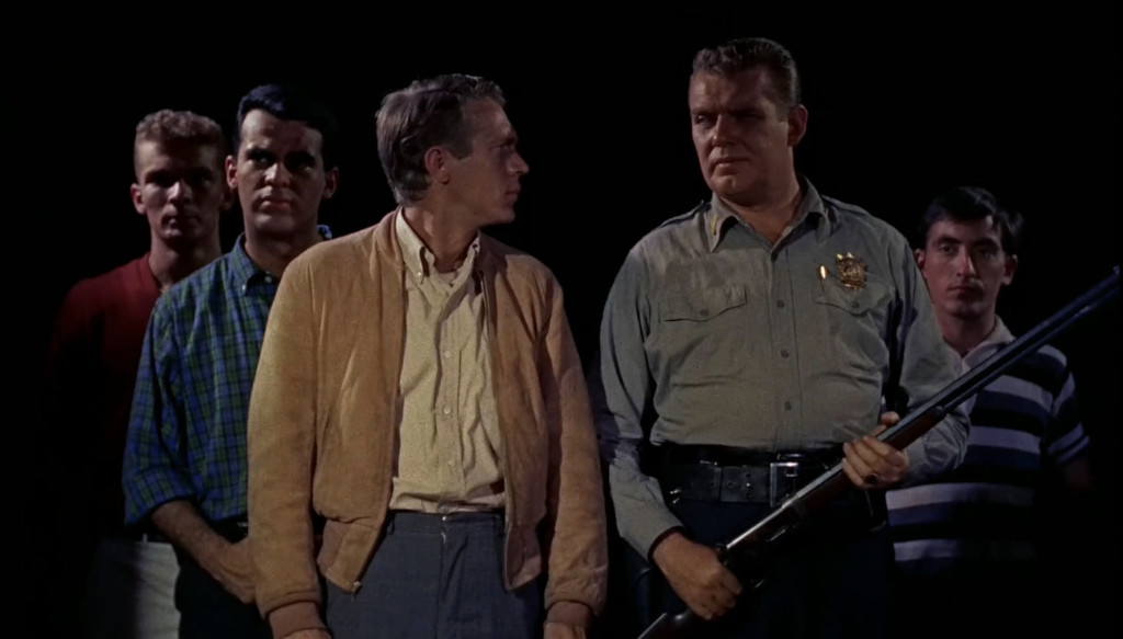 Of course, 27-year-old McQueen doesn’t fool anybody that he’s a teenager, but he’s got a twitchy energy that at least lets us keep some suspension of dispbelief. McQueen was the oldest teenager in the movie, but it’s not like the rest of the juvenile non-delinquents were exactly spring chickens, either. Aneta Corsaut was 24 during filming, Robert Fields, the leader of the teen gang, was 23 with a heavy stubble and another teenager, Pamela Curran, was also 27. The youngest teenager I have found in the bunch was 20-year-old Molly Ann Bourne. Of course, this was another trope of the teensploitation movie: there were hardly ever any actual teenages in them. James Dean was 24 when he did Rebel Without a Cause (and it showed) and almost all “teens” in Blackboard Jungle were between 21 and 25 years of age.