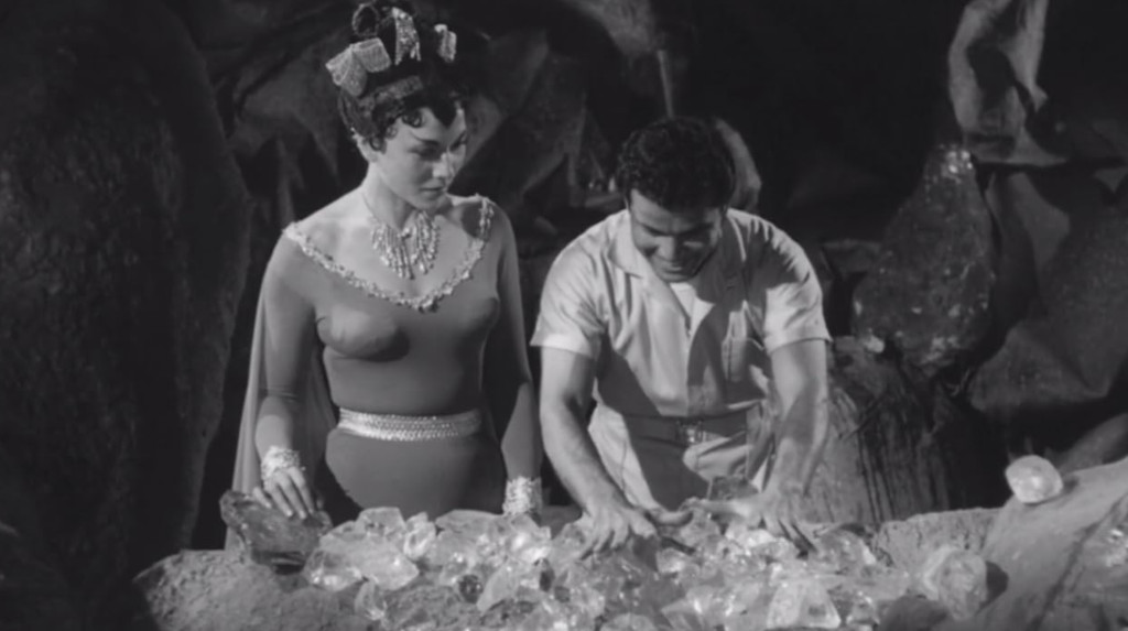But where Cat-Women of the Moon only had a bare-bones plot outline and contained an excruciating amount of padding in the form of interpretive dancing, endless scenes of the male astronauts being seduced with wine and grapes, as well as several scenes of dialogue completely empty of meaning, Missile to the Moon at least throws a little more subplot into the mix. Here we get the whole preamble to the moon flight involving Dr. Green, the government and the escaped convicts, the power struggle between Green, Gary and Steve, rock monsters, a power struggle in the lunar society, Gary’s hunt for diamonds, Alpha’s murder of the Lido and her subsequent marriage to Steve, Zema’s revolt and finally Gary’s greed-driven death. At least the film never gets boring.