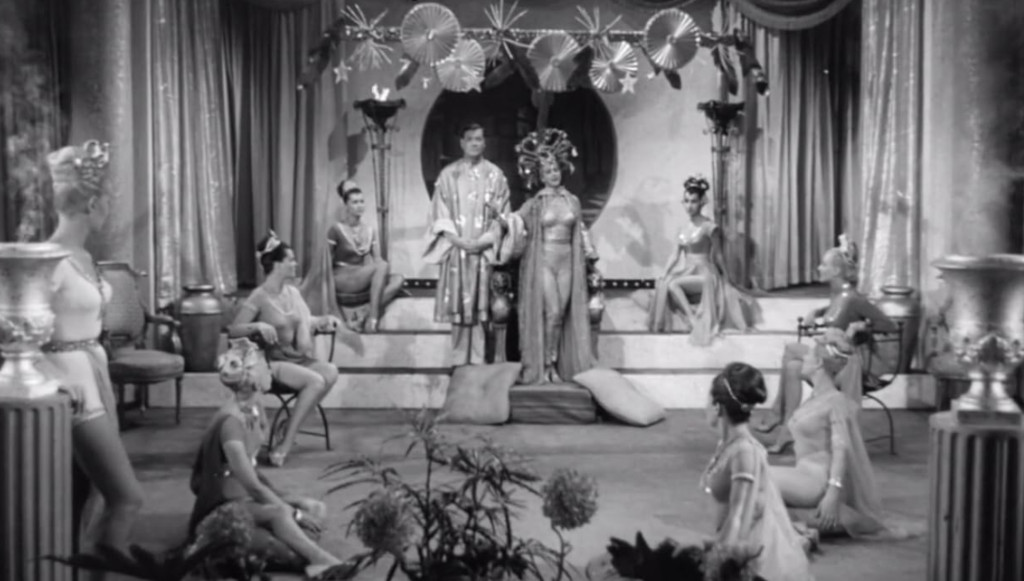 The film’s credit sequence introduces the moon girls as “The International Beauty Contest Winners”. This was no ploy made up by the producers, the film actually featured a Miss Yugoslavia, a Miss Germany, a Miss France and a handful of Misses Illinois and Florida. Whether Cunha and Jacobs went out of their way to cast a bunch of beauty queens or whether they just happened to do so is unclear, but it was practically impossible to walk out a door in Hollywood in the 50s without stumbling over a beauty pageant winner.