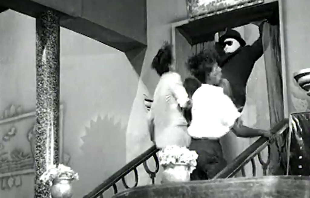 Without having much experience with Tamil or Indian film in general, I can’t say to what extent Maya Manithan follows or subverts the tropes and trends of Kollywood cinema at the time, but the story, curiously, is very similar to that of the Egyptian invisible man film Min aina laka haza? A young man from the working class courts a lady who is also in some way involved with a ruthless, rich crime lord by means of an invisibility potion, and in the process becomes a foil for the villain’s villainous schemes. While Min aina laka haza? had a stronger emphasis on slapstick and buffoonery, Maya manithan plays it straighter, but with a clear comedic undertone.