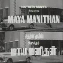 Maya Manithan. 1958, India. Produced & directed by T.R. Sundaram. Written by A.S. Muthu. Starring: Sriram, S.A. Ashokan, Chandrakanta, Kaka Radakrishnan, T.P. Muthulakshmi, C.D. Vanaja, Maithili, G.M. Basheer, K. Kannan, Kandhala Devi. Music: G. Govindarajulu Naidu. Cinematography: M. Krishnasamy. Editing: G.D. Joshi. Produced for Southern Movies.
