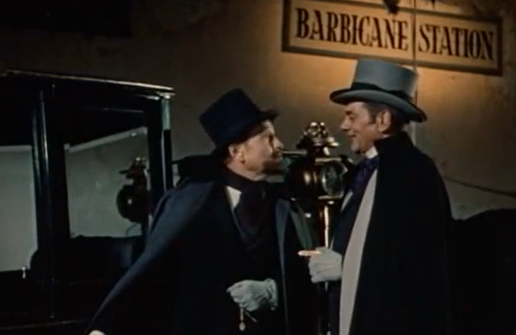 The year is 1868. Unionist arms manufacturer and inventor Victor Barbicane (Joseph Cotten) has invented a new explosive called Power X, which is so powerful that it cannot be tested on Earth. Gathering the International Armaments Club, he propopses to build a rocket to the moon, where the explosive can be safely tested. The cost will be so incredible, that Barbicane needs financiers from all over the world, and in return, he promises the secret to Power X to all who invest. However, word reaches confederate steel manufacturer Stuyvesant Nicholl (George Sanders), Barbicane’s arch rival. Nicholl is a god-fearing man, who fears that Barbicane’s invention will lead to the destruction of the Earth. To prevent this from happening, he challenges Barbicane to a duel.