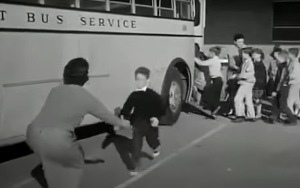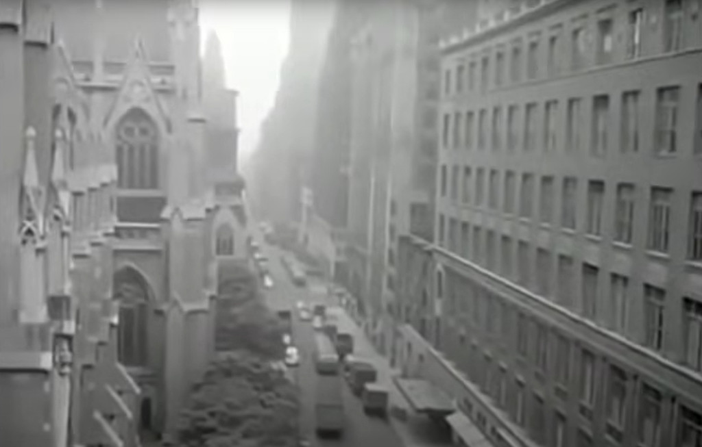 Meanwhile, the Canadian air force tries to blow up the mysterious missile with even less luck that the Russians. Nothing seems to be able to stop the monstrous missile, as all projectiles simply burn up in its heat before they can do any damage. Ottawa is obliterated. Serious men with serious machines hold serious conversations over radio and telephone, more fighters are sent up to try to destroy the menace, but nothing sticks. New York prepares for the onslaught and civil defence measures are taken, just as all New Yorkers have practiced. Children are evacuated from the schools to the countryside, and the adults huddle up in underground shelters.
