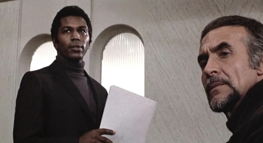 On the big screen Rhodes had a rare lead in the sociopolitically conscious blaxploitation movie Detroit 9000 (1973) – as a cop. He had a major role as a patient at a mental institution in Samuel Fuller’s acclaimed Shock Corridor (1963), playing a black student who believes he is a white member of the Ku Klux Klan. He played a doctor in Michael Crichton’s medical thriller Coma (1978), starring Geneviève Bujold and Michael Douglas. Fans of science fiction will recognise him as the aid to the villain in Conquest of the Planet of the Apes who grows into an ally of Roddy McDowell’s Ceasar. His first science fiction outing was in a bit-part as a pianist in The Lost Missile (1958). He followed it up with a slightly bigger role in John Sturges‘ viral thriller The Satan Bug (1965). The afore-mentioned trio remained his only theatrical SF movies, but he did have a co-lead in the bland 2001-inspired TV movie Earth II (1971), which was actually a failed pilot for a TV show. He also turned up in over a dozen SF TV shows as a guest star. Rhodes likewise starred in a handful of other TV movies. He kept busy acting until his death in 1992.