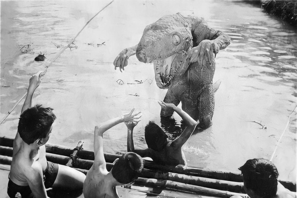 Taong Putik, or “Mud Man”, seems to have been borderline science fiction, even if it is often lumped together with the atomic monsters of the era. The film seems to have been shown on TV during the 60s and 70s. The most substantial plot synopsis I have found actually comes from Jose Manuel A. Santos’ novel Not Forever But Always, in which a character remembers seeing the movie on television. As described in the book, Taong Putik revolves around an infant who dies at birth, and is buried in a pool of mud, unchristened, and comes back to haunt the village in the form of a monstrous mud man. As such, this is more of a fantasy ghost story, with elements borrowed from the old Jewish folklore of the Golem. However, since other sources claim, albeit with little conviction, that radiation is somehow involved, I’m keeping the film on the list.