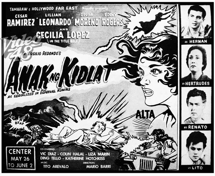 The film was produced by Tamaraw-Hollywood Far East Productions and directed by Mario Barri, a somewhat anonymous actor and director who was active during the 50s and 60s. The title role of Alta was played by Cecila Lopez (real name Mary Helen Wessner), who appears to have been a minor star of the Filipino movie scene in the 50s and 60s, and won a FAMAS award for best actress in 1952. She continued acting into the 80s. Her love interest and the male lead Hernan was played by Cesar Ramires, a prolific leading man between 1950 and 1977, who was nominated for two best actor FAMAS’s. Vic Diaz, who played the lead in Tuko sa Madre Kakaw, is also featured in the cast list, presumably as a villainoius character.